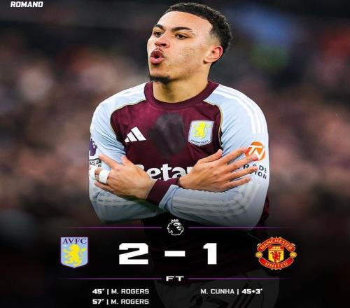 摩根-罗杰斯面对曼联上演梅开二度,成为了维拉的获胜功臣,先是在第45分钟左路内切后一脚兜射直挂死角,下半场第57分钟禁区左侧兜射破门!