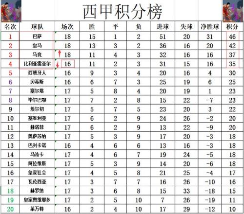 积分榜方面,巴萨客场拿下劲敌比利亚雷亚尔后豪夺联赛8连胜,再次将和皇马的差距拉大到4分。比利亚雷亚尔输球后,被赢球的马竞暂时以2分优势超过,跌到了第4,不过他们补赛能赢的话,还是有机会超过马竞重回前3,不过暂时也就没机会追上皇马和巴萨了。